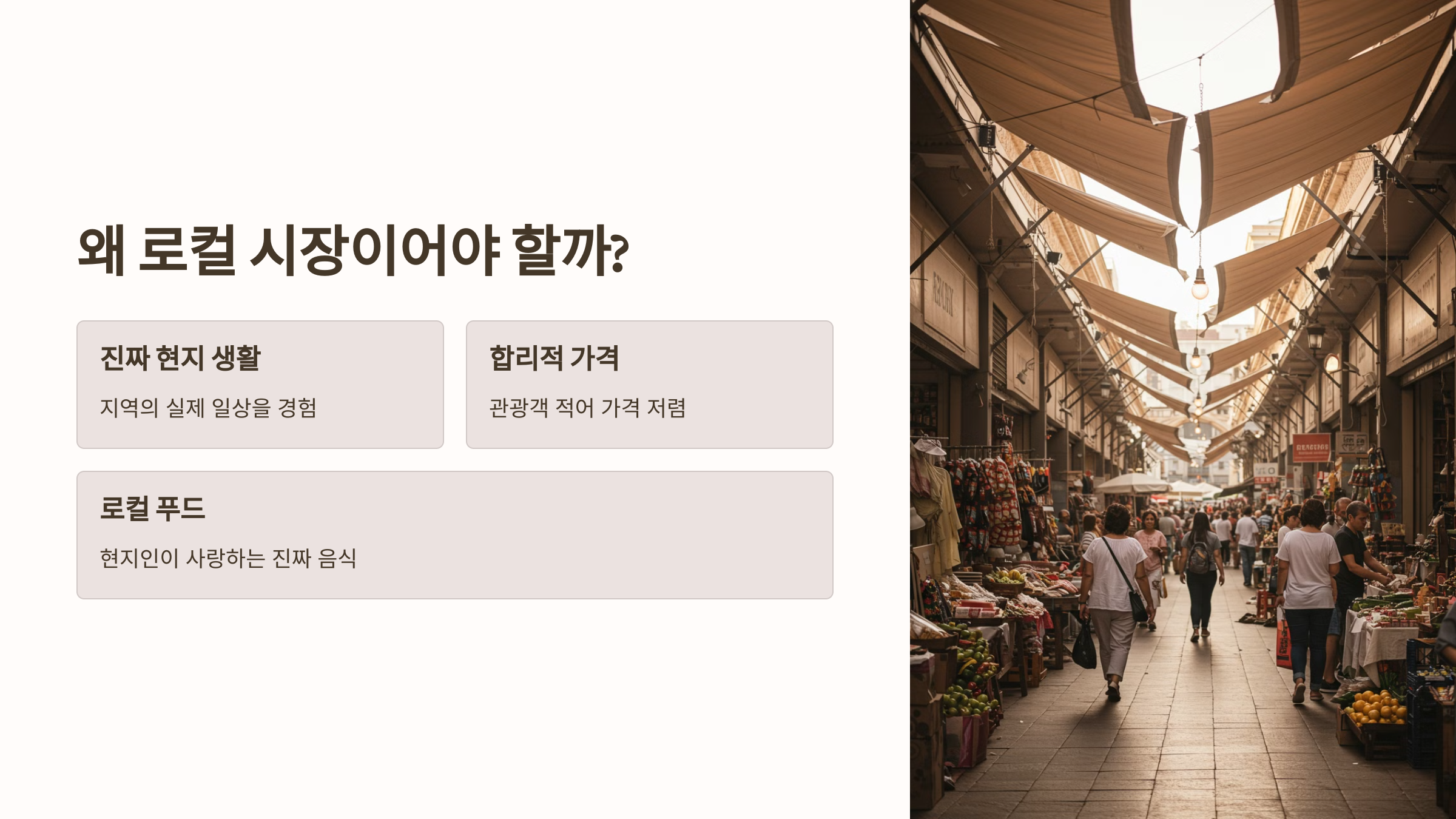 입니다. 이번 여행에서는 관광객이 잘 모르는 숨은 시장을 찾아 현지인처럼 경험해보세요! 여러분이 다녀온 찐 로컬 시장이 있다면 댓글로 공유해 주세요. 함께 새로운 시장을 발굴해보아요!✨