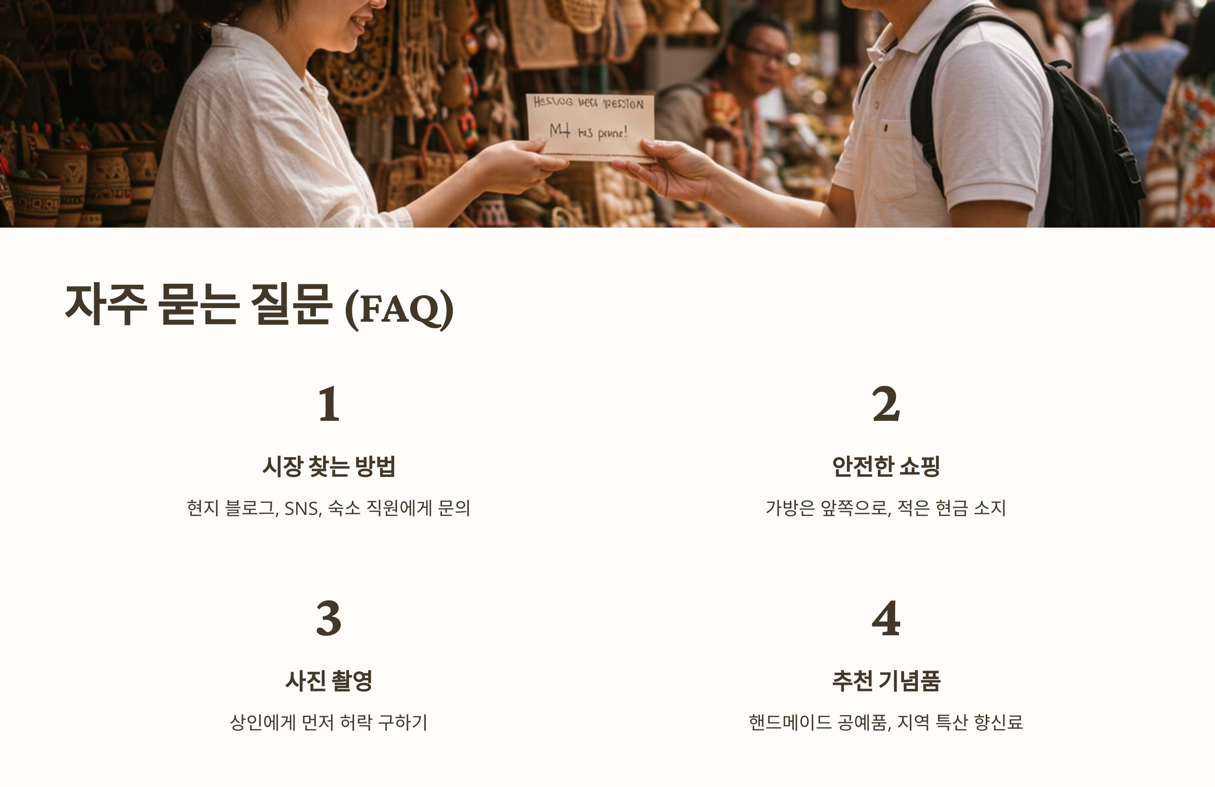 마지막으로 로컬 시장을 완벽하게 즐기는 방법을 정리해봤어요. 이것만 기억하면 시장 탐방이 더욱 재미있을 거예요!