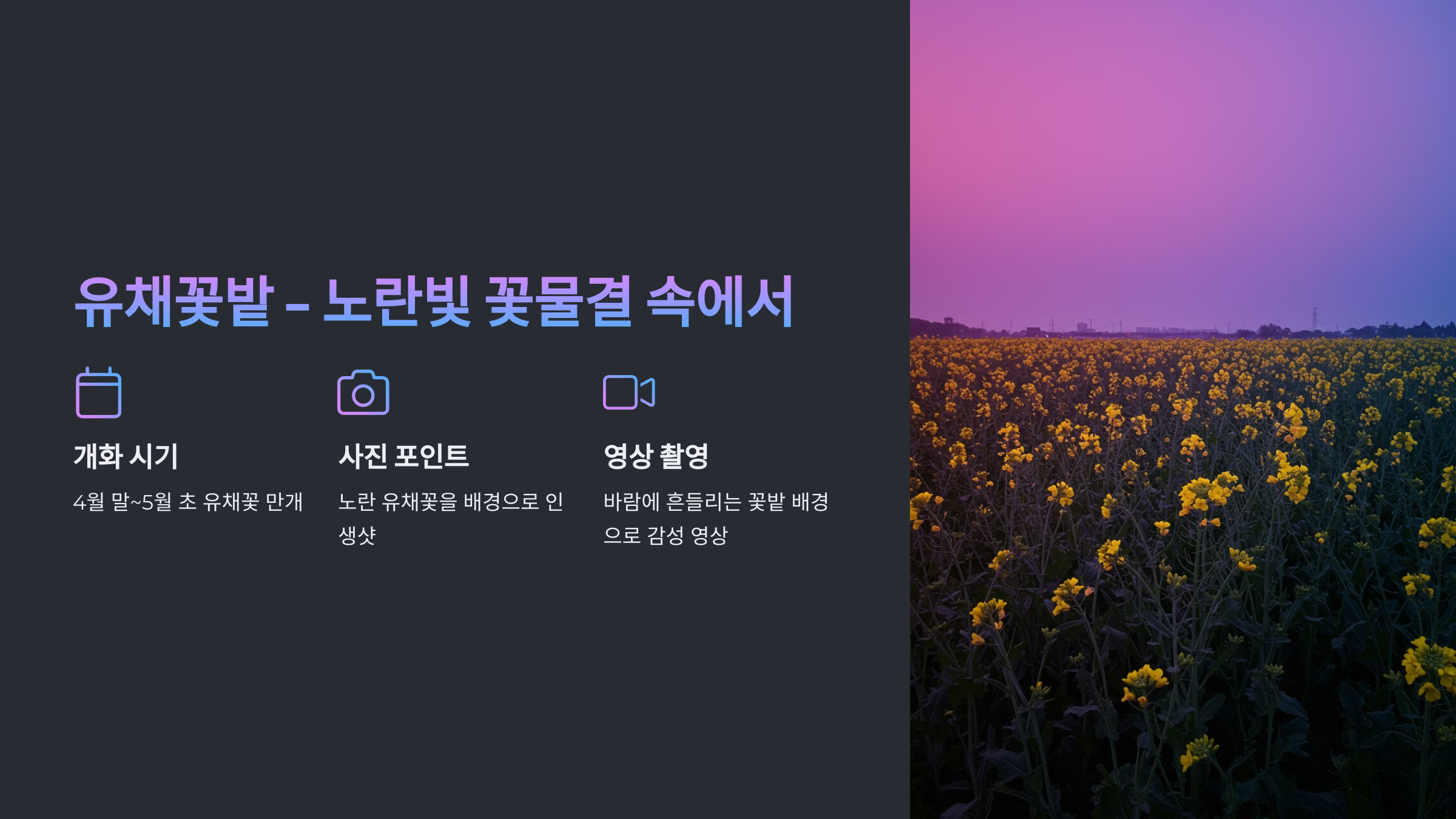 4. **유채꽃밭** – 노란 물결 속에서 📷