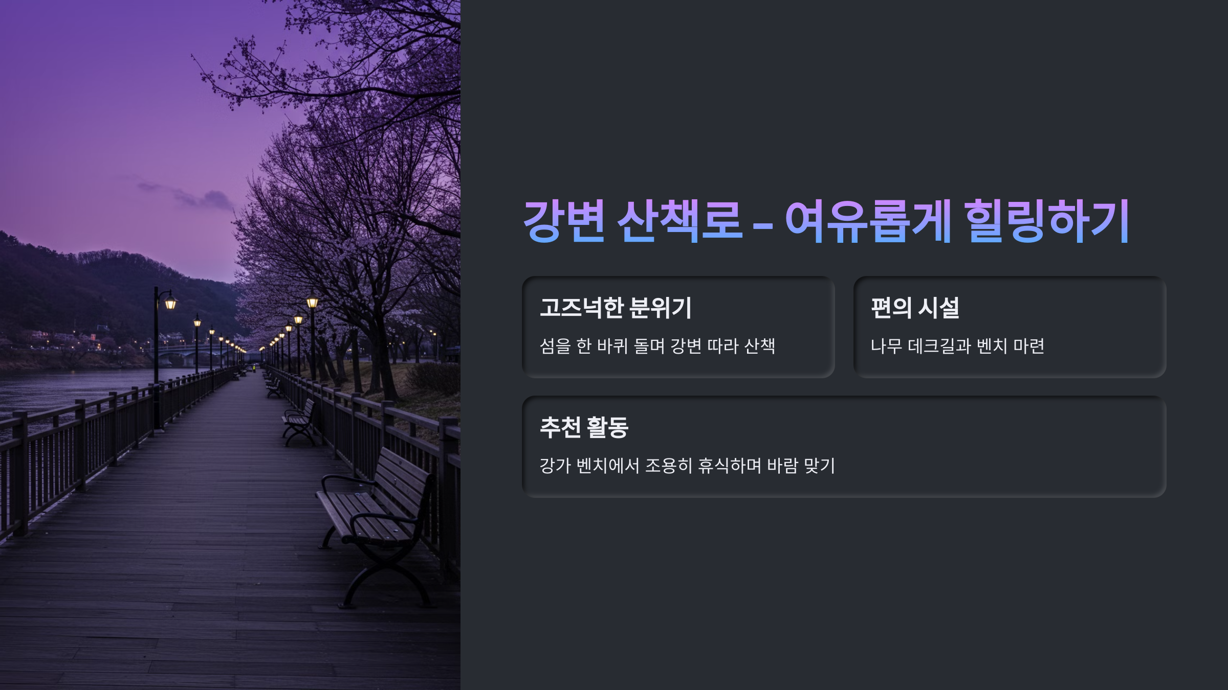 ## 🌊 강변 산책로 – 여유롭게 힐링하기