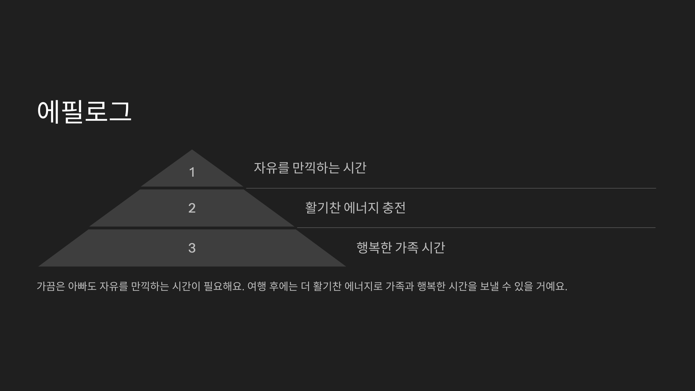 가끔은 아빠도 **자유를 만끽하는 시간**이 필요해요. 여행 후에는 더 활기찬 에너지를 얻어 가족과도 행복한 시간을 보낼 수 있을 거예요.